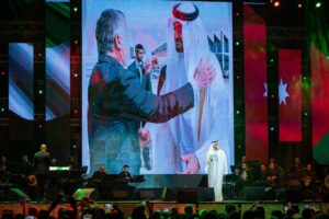كما أعلن خلال الحفل عن تقديم أغنية “حي بالشهامة” عن تقديمه إهداء خاص من الإمارات وشعبها الى الأردن وشعبها، حملت في رسالتها معاني الاحترام المتبادل والمحبة التاريخية التي تجمع الشعبين، تزينت خلالها الشاشات بصور القائدين صاحب السمو الشيخ محمد بن زايد آل نهيان رئيس دولة الإمارات، وجلالة الملك عبدالله الثاني بن الحسين ملك الأردن، ليشكر في نهاية الحفل جميع الحضور، والشركة المنظمة ” Entertainment165″ على تنظيمهم المتميز والمحترف من جميع الجوانب على إخراج هذه السهرة الإستثنائية بالشكل الذي خرجت عليه في فعالية “عمّانLive Nights 22” بمنطقة أرض المعارض طريق المطار.