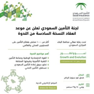 تحت رعاية معالي الدكتور فهد بن عبدالله المبارك، محافظ البنك المركزي السعودي، تنظم لجنة التأمين السعودي “ندوة التأمين السعودي السادسة” تحت شعار “نمو وتطور”، والتي ستعقد في فندق فور سيزونز الرياض، يومي  28 و29 سبتمبر 2022، والتي تعد استمراراً للنجاحات التي حققتها خلال النسخ الخمس السابقة، حيث ستضم النسخة السادسة أكثر من 1000 مختص  ومهتم بقطاع التأمين، ونخبة من الإداريين والتنفيذيين على المستويين المحلي والعالمي.