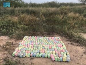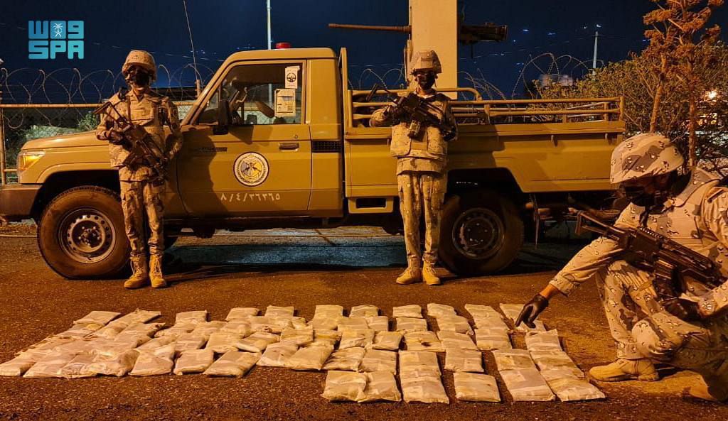 صرّح المتحدث الرسمي للمديرية العامة لحرس الحدود، العقيد مسفر القريني، بأن الدوريات البرية لحرس الحدود بمناطق نجران وجازان وعسير، أحبطت محاولات تهريب (69) طنًا و(689) كيلوجرامًا من مادة القات المخدر، وطن و(618) كيلوجرامًا من مادة الحشيش المخدر، وقبضت على مهربيها، وعددهم (70) متهمًا، منهم (33) مواطنًا، و(37) مخالفًا لنظام أمن الحدود، وهم: (17) من الجنسية اليمنية، و(20) من الجنسية الإثيوبية، وجرى استكمال الإجراءات النظامية الأولية بحقهم، وتسليمهم والمهربات لجهة الاختصاص.
