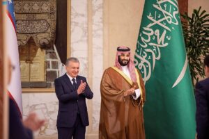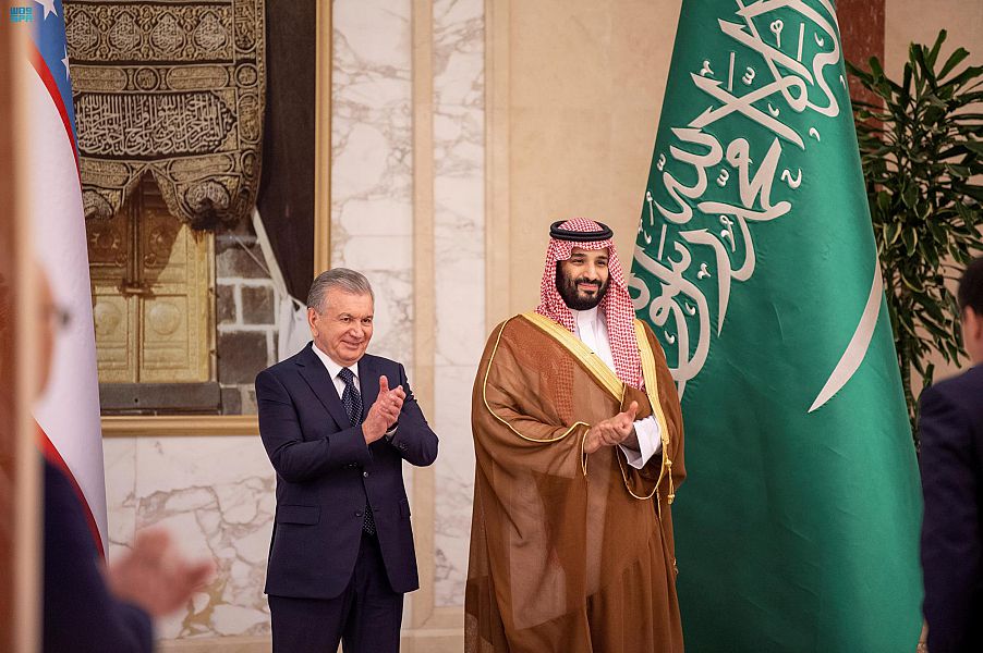 سمو ولي العهد يستقبل رئيس جمهورية أوزبكستان ويعقدان جلسة مباحثات رسمية ويشهدان تبادل عدد من الاتفاقيات ومذكرات التفاهم