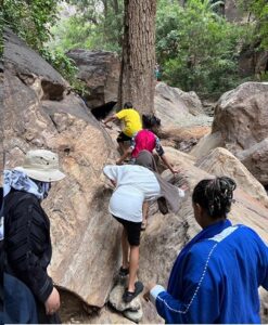 كما توجهوا في رحلتهم السياحية إلى منتزه الحبلة ، وزيارة قرية آل ينفع الأثرية ومتحف تمنية للتراث أحد متاحف منطقة عسير، كما توجهوا لمحمية المجرة بأبها في منطقة عسير. هذا وقد صاحب الرحلة السياحة القيام بأنشطة رياضية متعددة واستمتاع بالطبيعة الخلابة والضباب الكثيف وزاروا حديقة أبو خيال والمدينة العالمية ووادي لجب والجبل الأسود وطل السحاب والداير. ومزرعة البن البيئية واستمتعوا وهم يشاهدون طرق معالجة البن وكيفية جني بزور البن وطرق تجفيفها .