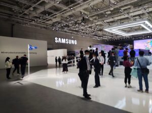 وتشارك شركة سامسونج بجناح ضخم يضم أحدث ما وصلت إليه تكنولوجيا الإلكترونيات الاستهلاكية.