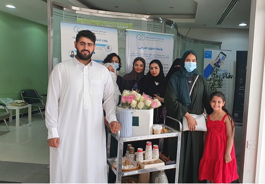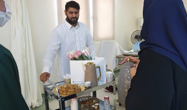 ضمن المسؤولية الاجتماعية زار أعضاء فريق هونا التطوعي مرضى الغسيل الكلوي بمركز الدكتور بسام الحمصي الطبي وكان في استقبالهم الأخصائية الاجتماعية أمل الشيباني حيث رحبت بهم وشكرتهم على مبادرتهم الإنسانية الهادفة . هذا وقام أعضاء الفريق بالسلام على المرضى وتقديم الورد لهم والضيافة وتمنوا لهم الشفاء العاجل وقووا من عزيمتهم بالصبر على المرض وقوة التحمل واحتساب الأجر من عند الله . وقد انفرجت أساريرهم وكانوا في غاية السعادة والانشراح .
