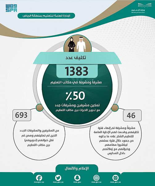 “تعليم الرياض”: خبرات جديدة بالإشراف التربوي وتدوير أكثر من 50% بين المكاتب