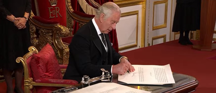 أعلن مجلس اعتلاء العرش البريطاني، السبت، تشارلز الثالث ملكاً رسمياً لبريطانيا، واجتمع المجلس في قصر سانت جيمس في لندن، لتنصيب الملك في غيابه، ثم أصدر الملك إعلاناً وتلا ووقع قسماً.