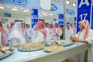 وانتقل سموه بعد ذلك لزيارة قرية الأسماك بالمحافظة، حيث قدّم معالي أمين المنطقة الشرقية عرضاً عن الجزيرة التي تُعد أكبر جزيرة للأسماك في منطقة الخليج، وتعد مقصداً لتجار الأسماك والسائحين من داخل المملكة ومن دول الخليج العربي، حيث رُوعِيَت إقامة مواقع استثمارية جاهزة للتشغيل؛ وذلك لتشجيع الحركة التجارية وازدهارها في المنطقة وتوفير فرص عمل لأبناء المنطقة.