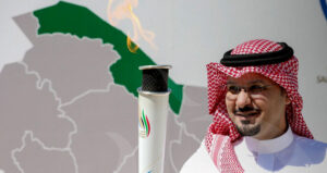 سعود بن عبد الرحمن متسلماً الشعلة (موقع دورة الألعاب السعودية)