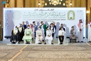نيابة عن خادم الحرمين الشريفين الملك سلمان بن عبدالعزيز آل سعود – حفظه الله – رعى صاحب السمو الملكي الأمير خالد الفيصل مستشار خادم الحرمين الشريفين أمير منطقة مكة المكرمة – اليوم – حفل تكريم الفائزين في مسابقة الملك عبدالعزيز الدولية لحفظ القرآن الكريم وتلاوته وتفسيره في دورتها الـ(42) التي نظمتها وزارة الشؤون الإسلامية والدعوة والإرشاد، ممثلة في الأمانة العامة لمسابقة القرآن الكريم المحلية والدولية في رحاب المسجد الحرام، بمشاركة 153 متسابقا، قدموا من 111 دولة من مختلف دول العالم.