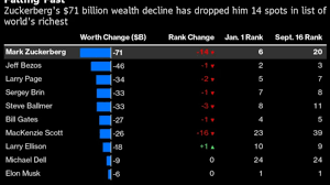 ويمكن أن يُعزى الكثير من الخسارة إلى “ميتا”، وفقًا لـ Bloomberg، فبعد أن وصلت أسهم شركته إلى 382 دولاراً في سبتمبر 2021، قام زوكربيرغ بتغيير اسم الشركة من “فيسبوك” إلى “ميتا” (Meta)، وانخفضت إلى حد كبير من تلك اللحظة.