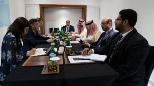 كما التقى نائب الرئيس التنفيذي للمفوضية الأوروبية المسؤول عن التجارة فالديس دومبروفسكيس، ونائب وزير التجارة التركي الدكتور مصطفى طوزكو، ونائب وزير التنمية الاقتصادية لروسيا الاتحادية فلاديمير إليشيف، ونائب وزير الخارجية والتجارة الدولية للعلاقات الاقتصادية الدولية الأرجنتينية سيسيليا توديسكا بوكو، وجرى خلال هذه اللقاءات بحث تطوير العلاقات وتعزيز التعاون الاقتصادي.