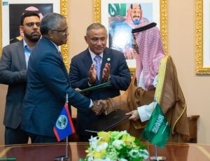 بعد ذلك وقع صاحب السمو الأمير فيصل بن فرحان بن عبدالله وزير الخارجية، ووزير خارجية بيليز إيامون كورتنيه، على مشروع برتوكول إقامة علاقات دبلوماسية بين البلدين.