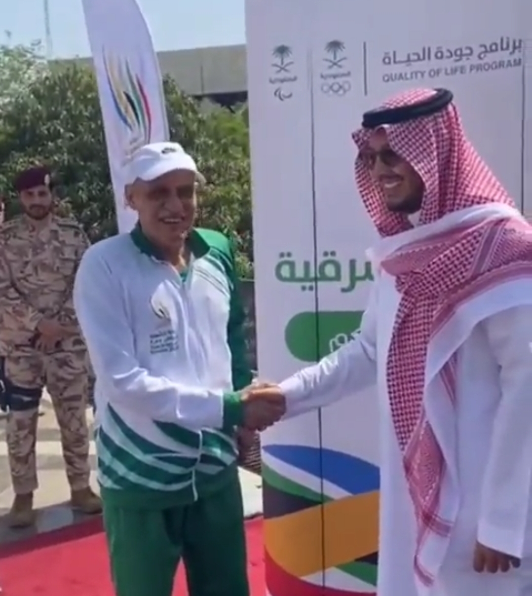 تسلم صاحب السمو الملكي الأمير أحمد بن فهد بن سلمان بن عبدالعزيز نائب أمير المنطقة الشرقية، شعلة #دورة_الألعاب_السعودية في ختام جولتها في المنطقة الشرقية حيث تواجد عميد المدربين الوطنيين الكابتن “خليل الزياني”