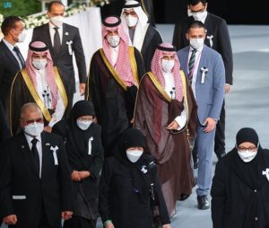 ونقل سموه خلال مراسم العزاء، تعازي خادم الحرمين الشريفين الملك سلمان بن عبد العزيز آل سعود، وصاحب السمو الملكي الأمير محمد بن سلمان بن عبد العزيز آل سعود، ولي العهد نائب رئيس مجلس الوزراء ـ حفظهما الله ـ لدولة السيد فوميو كيشيدا رئيس وزراء اليابان، في وفاة رئيس وزراء اليابان السابق السيد شينزو آبي.