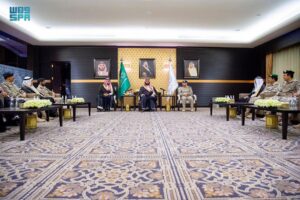 وأعرب سمو ولي العهد عن شكره وتقديره للجهود المخلصة لرجالات وزارة الدفاع وما وصلت إليه من تقدم كبير مع تنفيذ برنامج تطوير الوزارة، وما تحقق من ارتفاع في الاكتفاء الذاتي الداخلي للصناعات العسكرية من 2% إلى 15%، مؤملًا أن يصل إلى 50 % تحت قيادة وإشراف سمو وزير الدفاع ومنسوبي الوزارة.