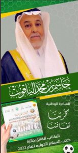 وأوضح الدكتور جاسم الياقوت نائب رئيس إتحاد الإعلاميين العرب والفائز بجائزة كتب السلام الدولية لعام 2022 عن كتابه التوثيقي للمبادرة الوطنية كرتنا ثقافتنا أنه سيتواجد قريبا لتوقيع عدد من النسخ للراغبين في إقتناء الكتاب الذي حاز على هذه الجائزة الدولية المرموقة واعتبره الكثيرون إنجاز جديد يضاف للإنجازات السعودية الدولية