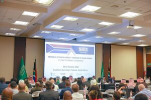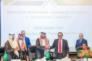 وأضاف الخريف أن هناك الكثير من القواسم المشتركة بين المملكة العربية السعودية وجنوب أفريقيا، خاصة في قطاع التعدين الذي يعد من الصناعات التاريخية المتميزة في جنوب أفريقيا. وتحرص المملكة على تكامل الأدوار الثنائية من خلال مؤتمر “إندابا” في كيب تاون و”مستقبل المعادن” الذي يقام في العاصمة الرياض في شهر يناير من كل عام، مؤكدًا رغبة المملكة في أن تكون جنوب أفريقيا جزءًا من رحلتها في خطط التنمية، كما ترغب المملكة في أن تكون جزءًا من رحلة جنوب أفريقيا للنمو والازدهار.