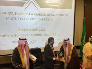 عقد مجلس الأعمال السعودي الجنوب أفريقي في مدينة بريتوريا بدولة جنوب أفريقيا إجتماع يومي 3- 4 أكتوبر 2022 بحضور وزير الصناعية والثروة المعدنية معالي الأستاذ بندر الخريف ووزير التجارة والصناعة بدولة جنوب أفريقيا معالي الأستاذ إبراهيم بتيل .