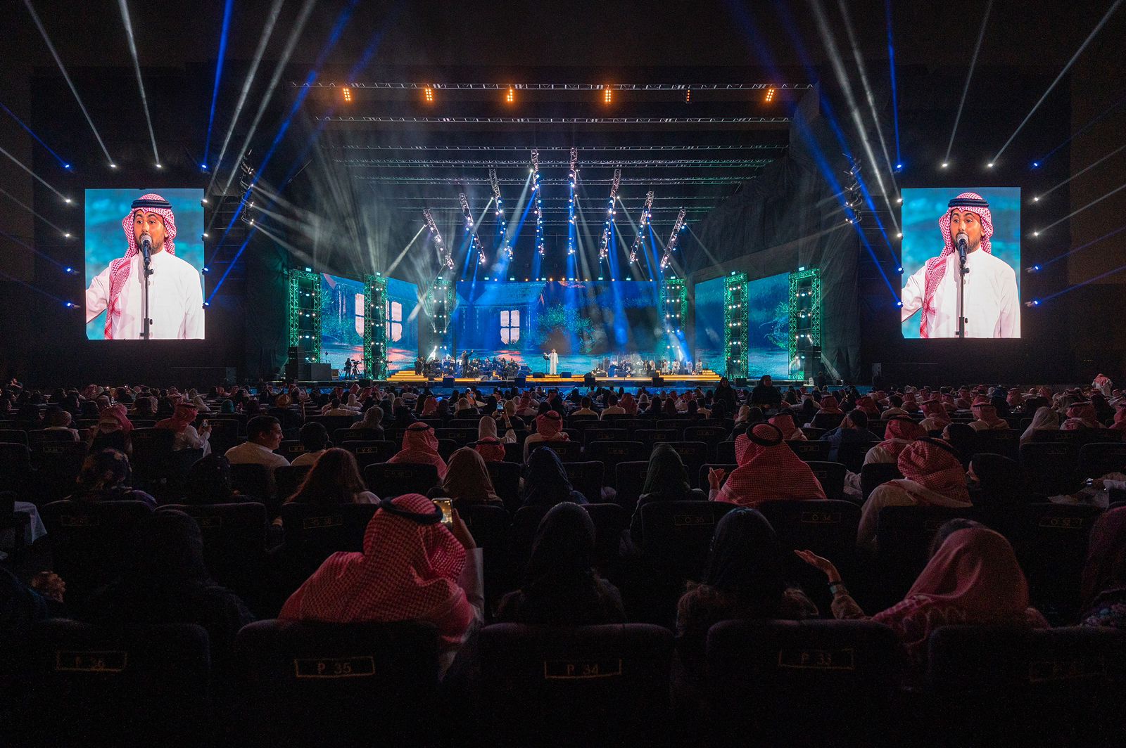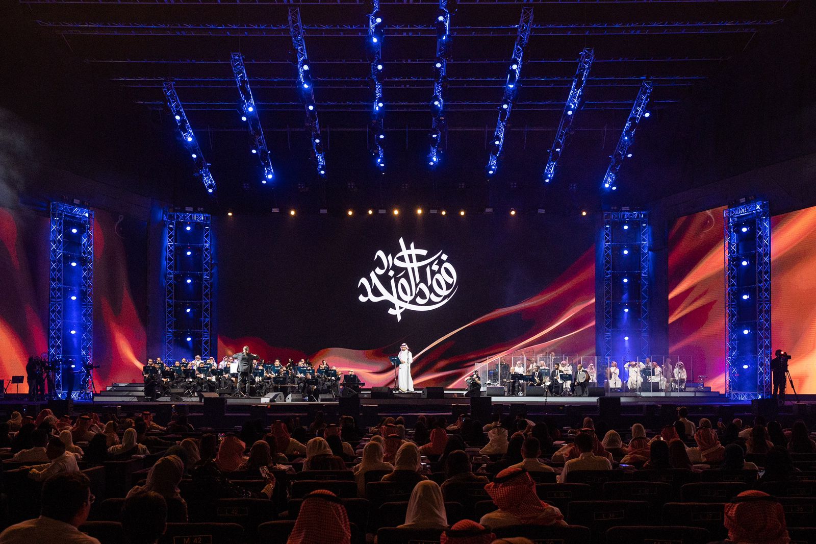 وأعرب فؤاد عبدالواحد عن تشرفه بالغناء في الأمسية، قائلاً: مساء الخير عليكم جميعاً يا أهل السعودية، اليوم في هذا المساء.. الكلمة والشعر والقصيدة وأبياتها تحتفل باسم لامع وكبير في عالم القصيدة والشعر، الأمير الشاعر عبد الرحمن بن مساعد”، وأضاف شاكراً: “أحيّي جميع ضيوفنا اليوم الموجودين من عمالقة الأدب والثقافة، وأتوجه بالشكر الى وزارة الثقافة السعودية وهيئة الأدب والنشر والترجمة على تنظيمهم لهذا الحدث بالتعاون مع بنش مارك، والفرقة الموسيقية بقيادة المايسترو أمير عبد المجيد”، والى جميع الفنانين المشاركين في الحفل الفنانة أنغام، وعايض، وأميمة طالب.