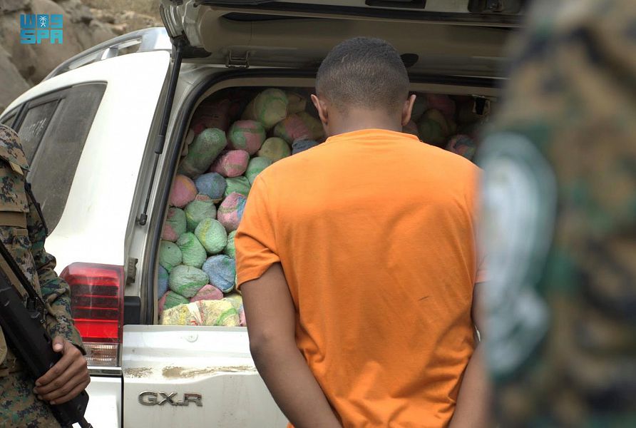 صرّح المتحدث الإعلامي لوكالة وزارة الداخلية لشؤون الأفواج الأمنية، بأن دوريات الأفواج الأمنية في منطقتي جازان وعسير، أحبطت محاولات تهريب (3) أطنان و(309) كيلوجرامات من نبات القات المخدر، و(772) كيلوجرامًا من مادة الحشيش المخدر، و(206,340) قرصًا خاضعًا لتنظيم التداول الطبي، وقبضت على مهربيها، وعددهم (80) متهمًا، منهم (15) مواطنًا، ومقيم من الجنسية اليمنية، و(64) مخالفًا لنظام أمن الحدود، وهم: (44) من الجنسية اليمنية، و(13) من الجنسية الإثيوبية، و(7) من الجنسية الإريترية، وجرى استكمال الإجراءات النظامية الأولية بحقهم، وتسليمهم والمهربات لجهة الاختصاص.