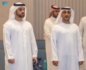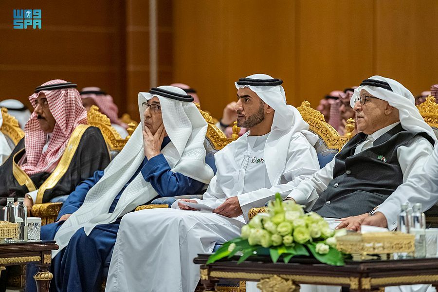 وكرَّم الشيخ نهيان بن سيف آل نهيان، عضو مجلس الأعمال السعودي الإماراتي المشترك سلمان العليان، مثمناً للحضور تلبيتهم الدعوة والمشاركة من خلال المداخلات القيِّمة في الجلسة الحوارية.