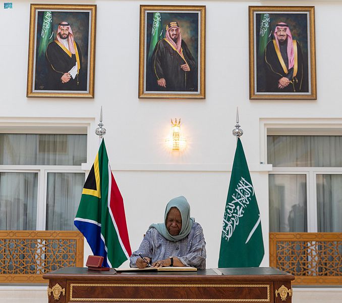 حضر الاستقبال سفير خادم الحرمين الشريفين لدى جمهورية جنوب أفريقيا سلطان اللويحان العنقري.