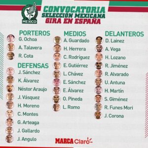 و أعلن جيراردو مارتينو مدرب المكسيك الأرجنتيني، والذي سبق له تدريب منتخب بلاده ومنتخب باراجوي وبرشلونة وفريق اتلانتا الأمريكي… عن توجيه دعوة رسمية لـ31 لاعبا لكأس العالم قطر 2022. وأعلن المدرب جيراردو “تاتا مارتينو” عن لاعبي كرة القدم الذين سيسافرون إلى مدينة جيرونا الإسبانية لخوض المباريات الودية الأخيرة والتي سيلتقي خلالها مع العراق يوم 9 نوفمبر في أسبانيا تحديدأ للتعرف على طريقة لعب من نفس مدرسة المنتخب السعودي، ويختتم مبارياته التجريبية مع السويد يوم 16نوفمبر.