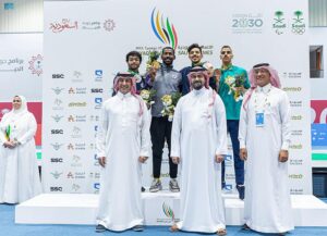 توّج صاحب السمو الملكي الأمير خالد بن بندر بن مساعد ، رئيس الاتحاد السعودي للرماية، بحضور رئيس الاتحاد السعودي للمبارزة، أحمد الصبان و نائب رئيس الاتحاد محمد بو علي، الفائزين والفائزات بمنافسات المبارزة لسلاح الشيش وسلاح المبارزة للرجال والسيدات والتي يستضيف منافساتها نادي الرياض. وأسفرت نتائج اليوم عن فوز اللاعبة أناهيد فارس بزيع الخيبري بالمركز الأول في منافسات سلاح الشيش للسيدات، تلتها اللاعبة آية عمار يوسف في المركز الثاني والميدالية الفضية، وجاءت اللاعبتان لين عدنان الفوزان وجود حمود الشهري في المركز الثالث والميدالية البرونزية.