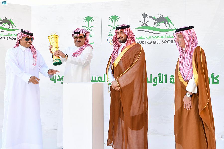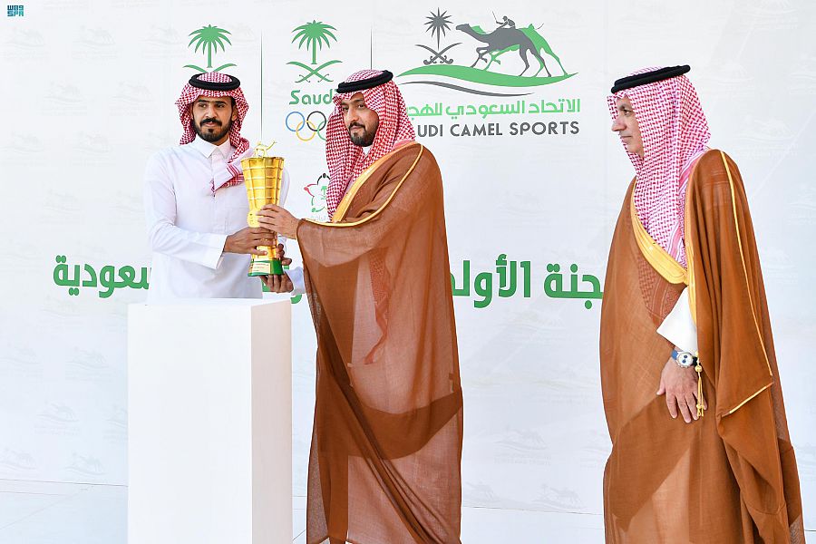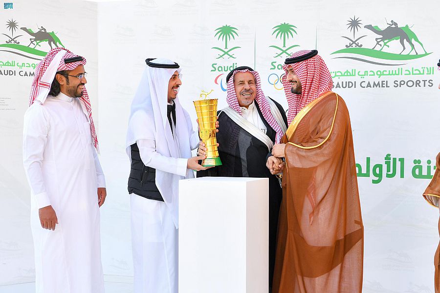سمو الأمير عبدالله بن فهد بن عبدالله يكرم الفائزين في كأس الأولمبية للهجن في تبوك