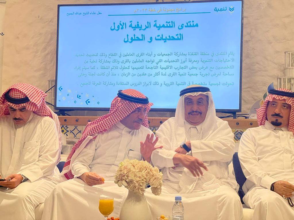 إستضاف رجل الأعمال عبدالله الجميح الرئيس الفخري لجمعية ” تنمية القرى الخيرية” بمنطقة مكة المكرمة بمنزله العامر بجدة نخبة من رجال الأعمال والأصدقاء يوم الأربعاء الموافق ٩ نوفمبر ٢٠٢٢م للتعريف بجمعية تنمية القرى الخيرية وعرض جدول الأعمال السنوي ومناقشة سبل الإرتقاء والتطوير بحضور رئيس مجلس إدارة الجمعية المهندس سمير محمد حلواني وعددا من الأعضاء .