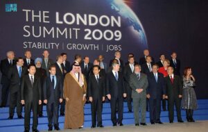 وفي شهر أبريل من عام 2009م شهد مركز إكسل الدولي شرق العاصمة البريطانية لندن اجتماع قادة دول العشرين الذين ناقشوا عددًا من المقترحات والإجراءات التي تهدف إلى إنعاش الاقتصاد العالمي وتحسين مسار الاقتصاديات الدولية وتخفيض حدة الركود والانكماش الاقتصاديين وتنشيط عمليات الإقراض لتوفير المصادر المالية للأفراد والعائلات والشركات ودعم مسيرة الاستثمار المستقبلي علاوة على إصلاح الفجوات في المؤسسات الدولية ومناقشة مقترح إنشاء نظام دولي للإنذار المبكر بشأن الوضع الاقتصادي والمالي الدولي.