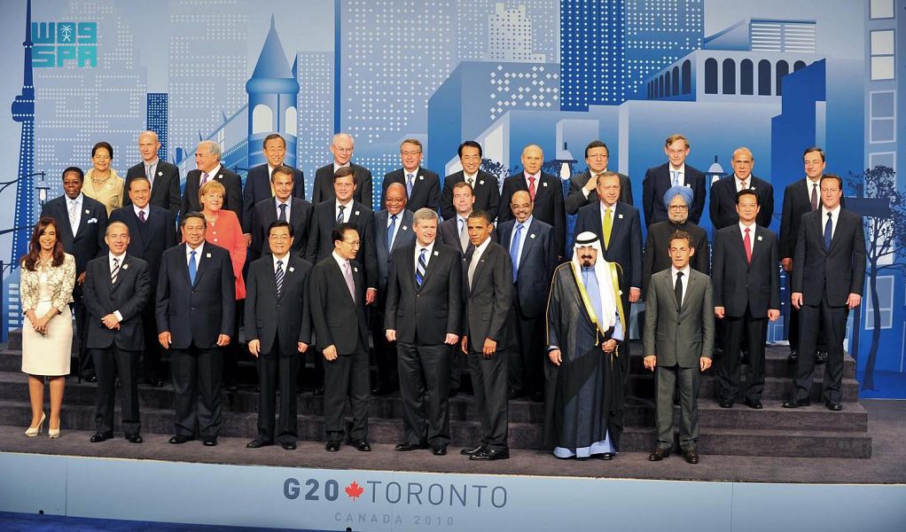 وبمشاركة خادم الحرمين الشريفين الملك عبدالله بن عبدالعزيز آل سعود -رحمه الله- عقد قادة دول مجموعة العشرين قمتهم الاقتصادية في مدينة تورنتو الكندية خلال شهر يونيو من عام 2010م.