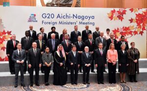 وقال سمو ولي العهد :” إن المملكة ستتولى رئاسة مجموعة العشرين في ديسمبر”، مؤكدًا العزم على مواصلة العمل لتحقيق التقدم المنشود في جدول أعمال المجموعة، والعمل مع الدول الأعضاء كافة، وبخاصة أعضاء الترويكا دولتي اليابان وإيطاليا، لمناقشة القضايا الملحة في القرن الواحد والعشرين، ولتعزيز الابتكار والحفاظ على الأرض ورفاه الإنسان.