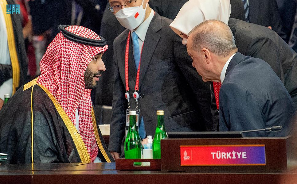 وفور وصول سمو ولي العهد إلى مقر انعقاد القمة كان في استقباله فخامة الرئيس جوكو ويدودو رئيس جمهورية إندونيسيا.
