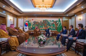 سمو ولي العهد يعقد جلسة مباحثات رسمية مع رئيس وزراء كوريا