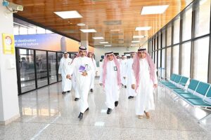 كما تفقّد معاليه ميدانيًا، صالة السفر الحالية بمطار الأحساء الدولي وتجول في مرافقها واطمأن على آلية سير العمل، مطلعاً عن كثب على مستوى الخدمات المقدمة للمسافرين، مؤكداً معاليه أهمية الارتقاء بجودة الخدمات وتعزيز كل ما من شأنه توفير تجربة سفر مرنة للمسافرين.