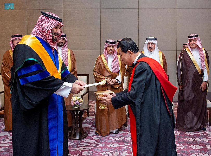 تسلم صاحب السمو الملكي الأمير محمد بن سلمان بن عبدالعزيز آل سعود ولي العهد رئيس مجلس الوزراء، شهادة الدكتوراه الفخرية، من جامعة كاسيتسارت التايلندية في مجال معرفة الأرض من أجل التنمية المستدامة.