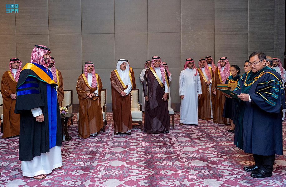 سمو ولي العهد يتسلم شهادة الدكتوراه الفخرية من جامعة كاسيتسارت التايلندية في مجال معرفة الأرض من أجل التنمية المستدامة، وسموه يؤكد دعم المملكة للجهود المبذولة في مجال البيئة