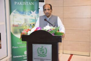 أكد الوزير الإتحادي أحسن إقبال اليوم خلال تواجده مع الجالية الباكستانية بالقنصلية العامة للباكستان بجدة  أن التركيز الأساسي للحكومة هو الاستمرار في بناء الاستقرار السياسي والمجتمع الديمقراطي والنمو الفعال لجميع الصناعات في باكستان. وأن الحكومة ستركز على استقرار الاقتصاد في الفترة المتبقية من مدتها مع التركيز بشكل خاص على تعزيز الصادرات الباكستانية.