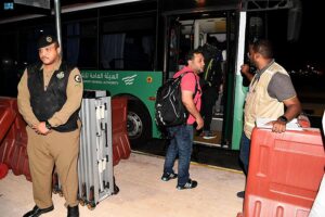 انطلقت حافلات النقل الترددي لمشجعي كرة القدم من منفذ سلوى الحدودي إلى منفذ أبو سمرة، تحمل عددا من الجماهير الرياضية من مختلف الدول، وسط إجراءات تنظيمية واسعة من الهيئة العامة للنقل، والجهات المعنية.