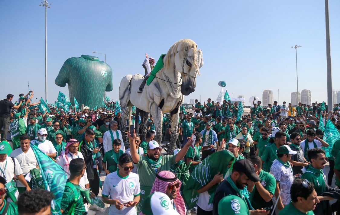 جمهور المنتخب السعودي ينظم مسيرته الأولى «فوق هام السحب» في كأس العالم ٢٠٢٢