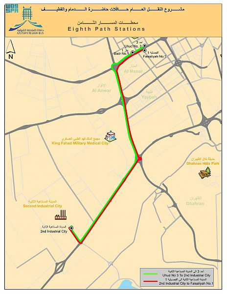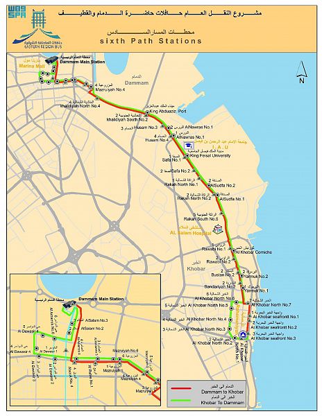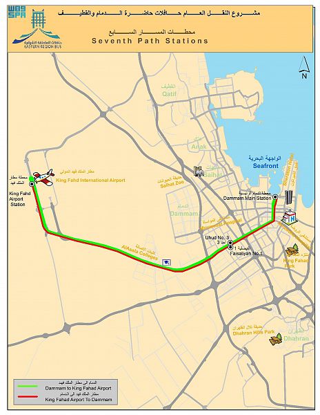 وأبان أن المشروع يشتمل على (8) مسارات تربط مراكز النمو لحاضرة الدمام ومحافظة القطيف، وبطول إجمالي يزيد عن (400 كم للذهاب والعودة )، وتشمل مسارات مشروع النقل العام بالحافلات على عدد 212 محطة للركاب موزعه على جميع المسارات وفق النطاق الجغرافي لكل مسار جارى تنفيذها حاليا، وحافلات بعدد (77) حافله قياسية وعدد مقاعدها لا يقل عن 35 مقعدًا ولها ثلاث أبواب لتغطى جميع المسارات.