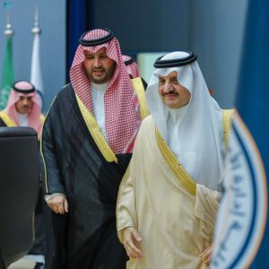 وهنَّأَ سموُّه الخريجين، داعياً الله لهم بالتوفيق في حياتهم العملية، وأن يسهموا في رفعة الوطن وتطوره.