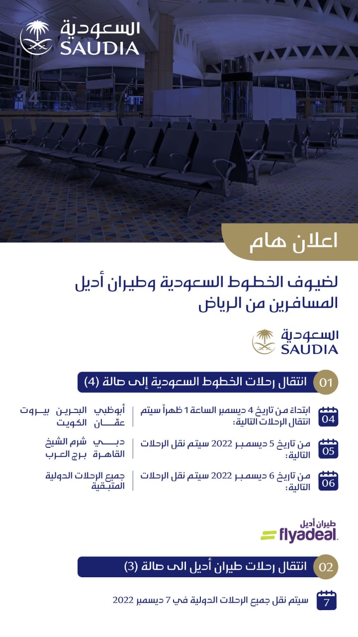 انتقال كافة رحلات مجموعة الخطوط السعودية الدولية بمطار الملك خالد الدولي بالرياض إلى صالتي السفر 3 و 4
