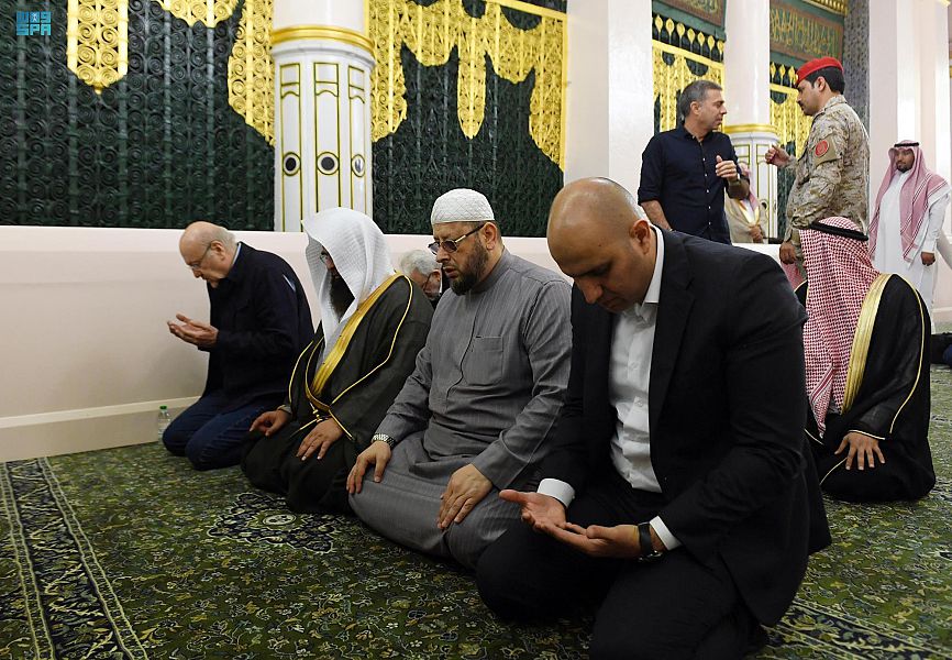 وكان في استقبال دولته لدى وصوله المسجد النبوي مساعد الرئيس العام لشؤون المسجد النبوي الدكتور أحمد بن محمد الخضيري وقائد قوة أمن المسجد النبوي العقيد متعب البدراني وعدد من المسؤولين.