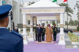 سمو ولي العهد يستقبل رئيس جمهورية الصين الشعبية ويعقدان جلسة مباحثات رسمية ويشهدان مراسم تبادل عدد من الاتفاقيات ومذكرات التفاهم الثنائية بين البلدين