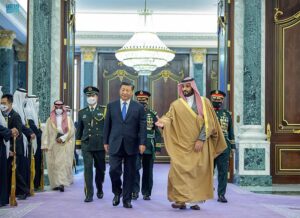 كما عقد سمو ولي العهد وفخامة رئيس جمهورية الصين الشعبية، جلسة مباحثات رسمية، جرى خلالها استعراض أوجه الشراكة بين المملكة العربية السعودية وجمهورية الصين الشعبية، والجهود التنسيقية المشتركة لتعزيز التعاون بين البلدين في مختلف المجالات بما يتلاءم مع رؤيتهما، وبحث فرص استثمار الموارد المتاحة في كلا البلدين بما يحقق المصالح المشتركة، إلى جانب بحث المستجدات الإقليمية والدولية والقضايا ذات الاهتمام المشترك والجهود المبذولة بشأنها.