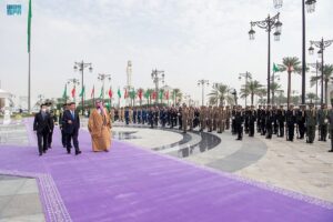 وقد أجريت لفخامته مراسم الاستقبال الرسمية.