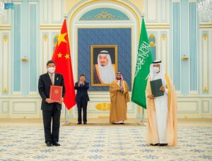 بعد ذلك شهد سمو ولي العهد وفخامة رئيس جمهورية الصين الشعبية، مراسم تبادل عدد من الاتفاقيات ومذكرات التفاهم الثنائية بين البلدين، وهي كالتالي: