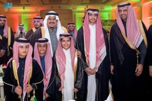 وكان في استقبال سموه لدى وصوله مقر الحفل سفير دولة قطر بندر بن محمد العطية وعدد من منسوبي السفارة.
