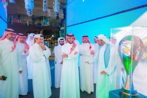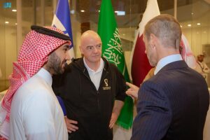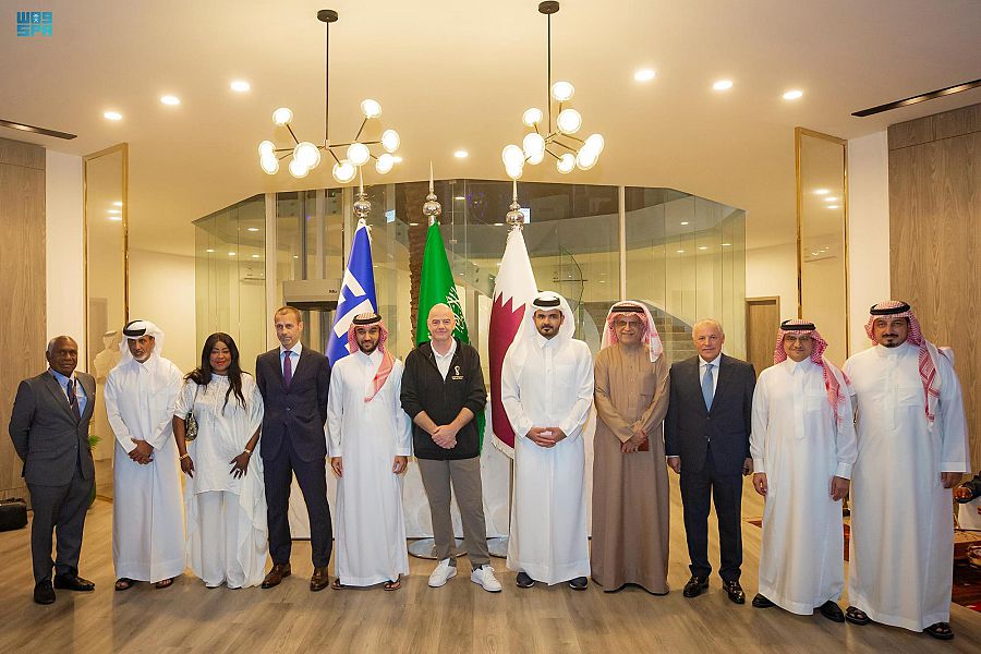 سمو وزير الرياضة يحتفي بقيادات كرة القدم العالمية في البيت السعودي بالدوحة